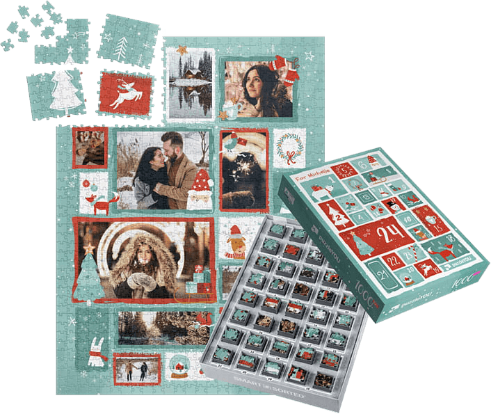 Pre-sorted for maximum enjoyment, this 1000-piece puzzle guides you through sections of 25 to 150 pieces over the 24 days of Advent. Your finished custom creation is revealed on Christmas Eve!