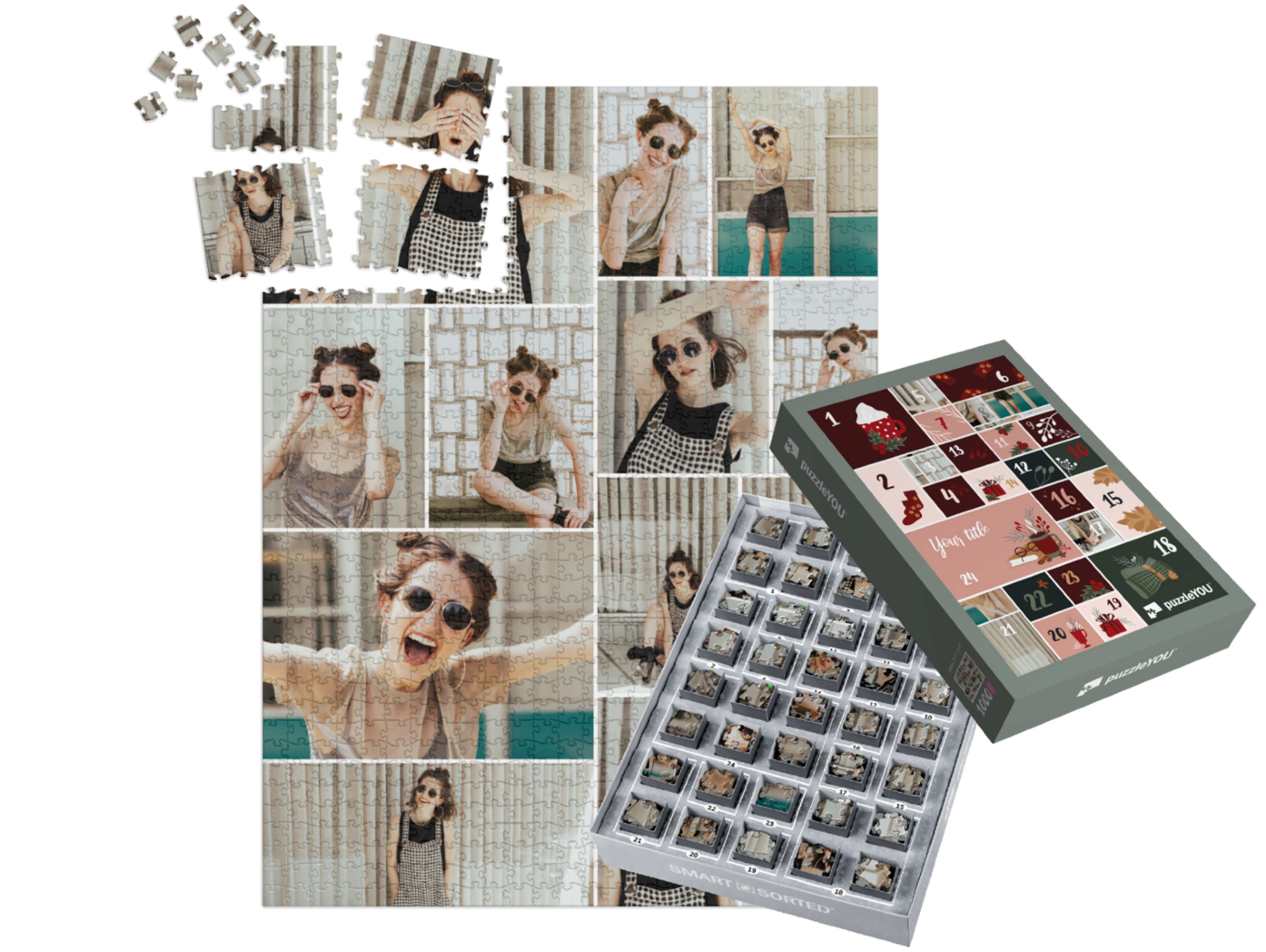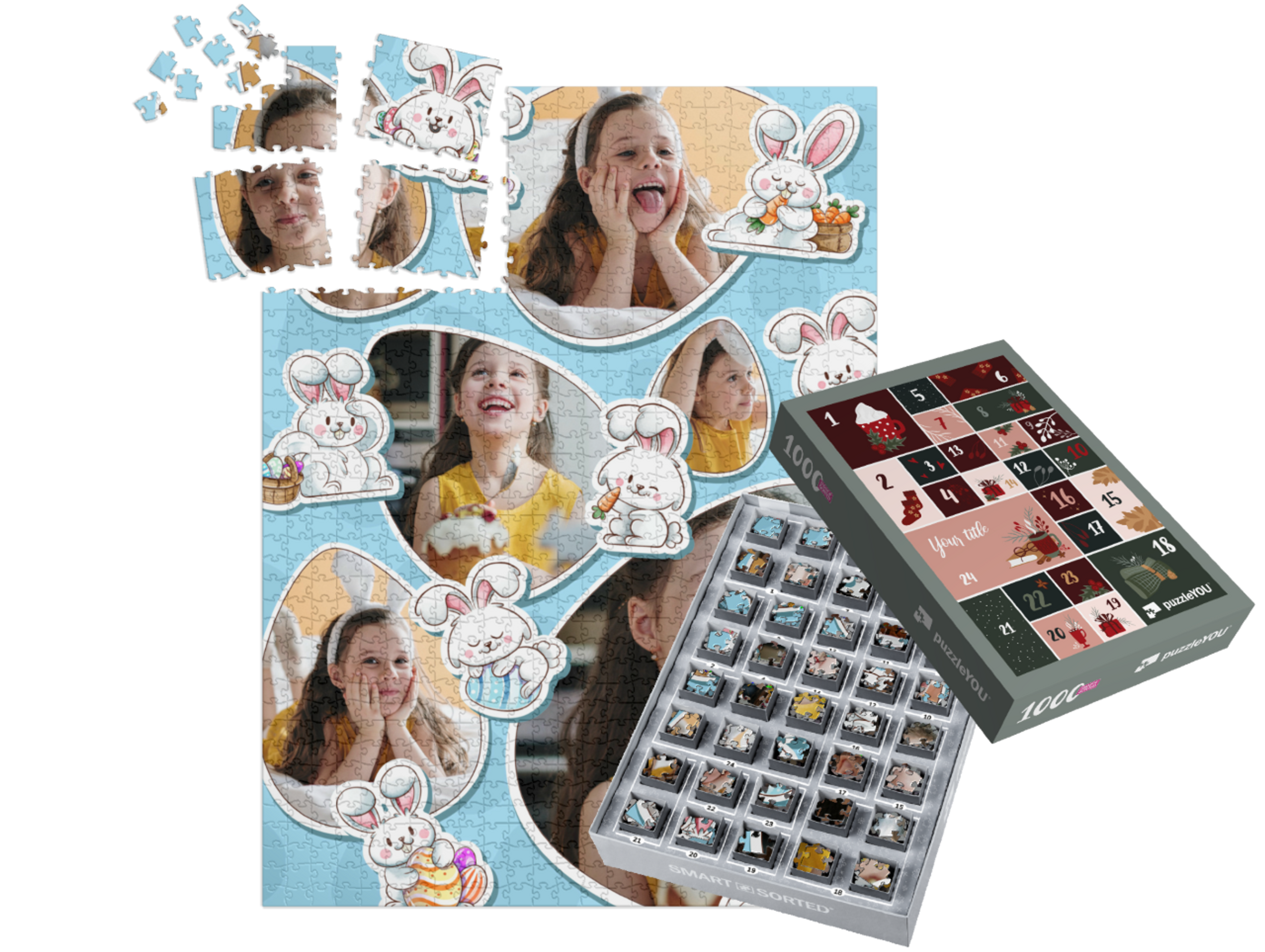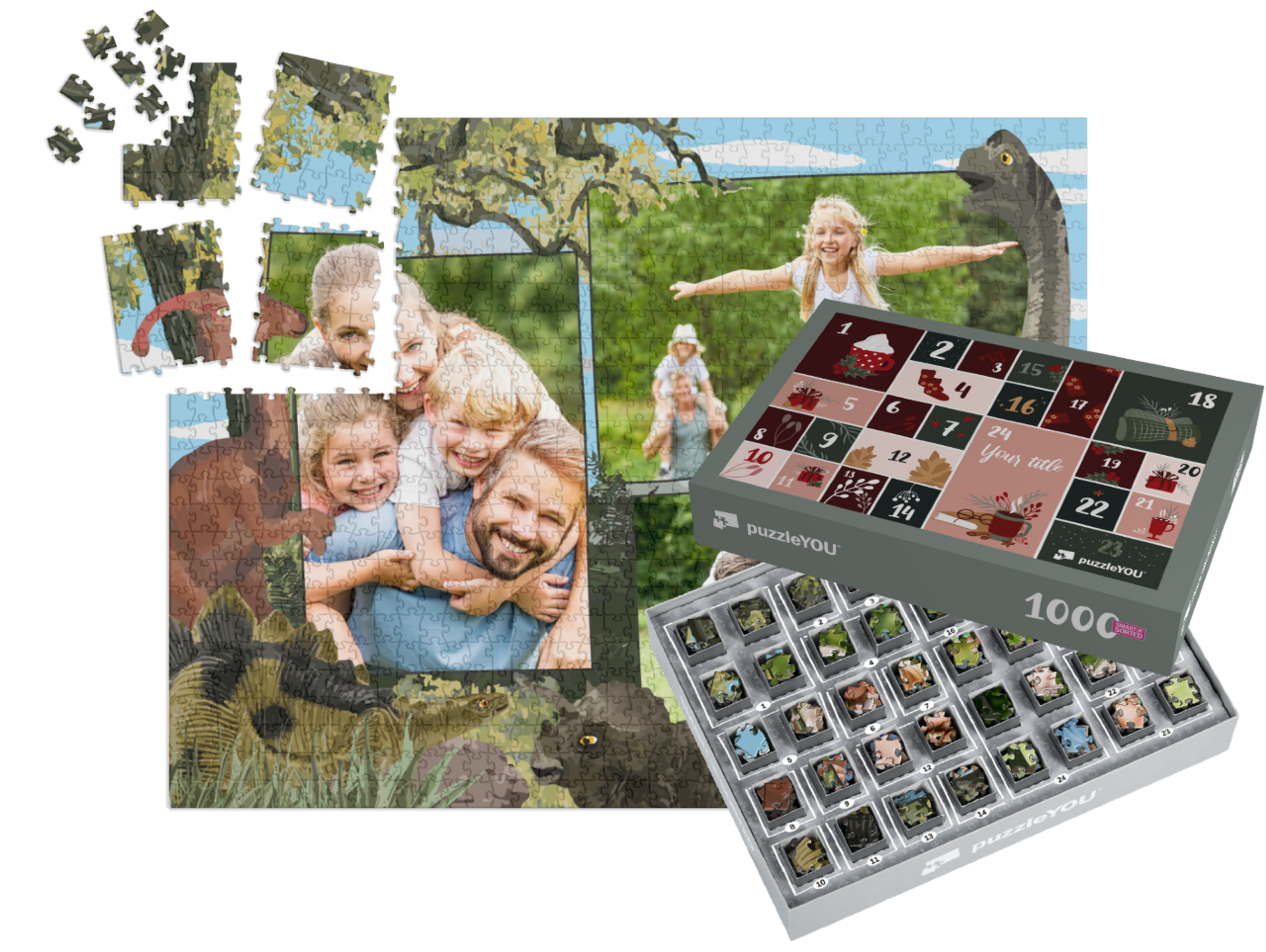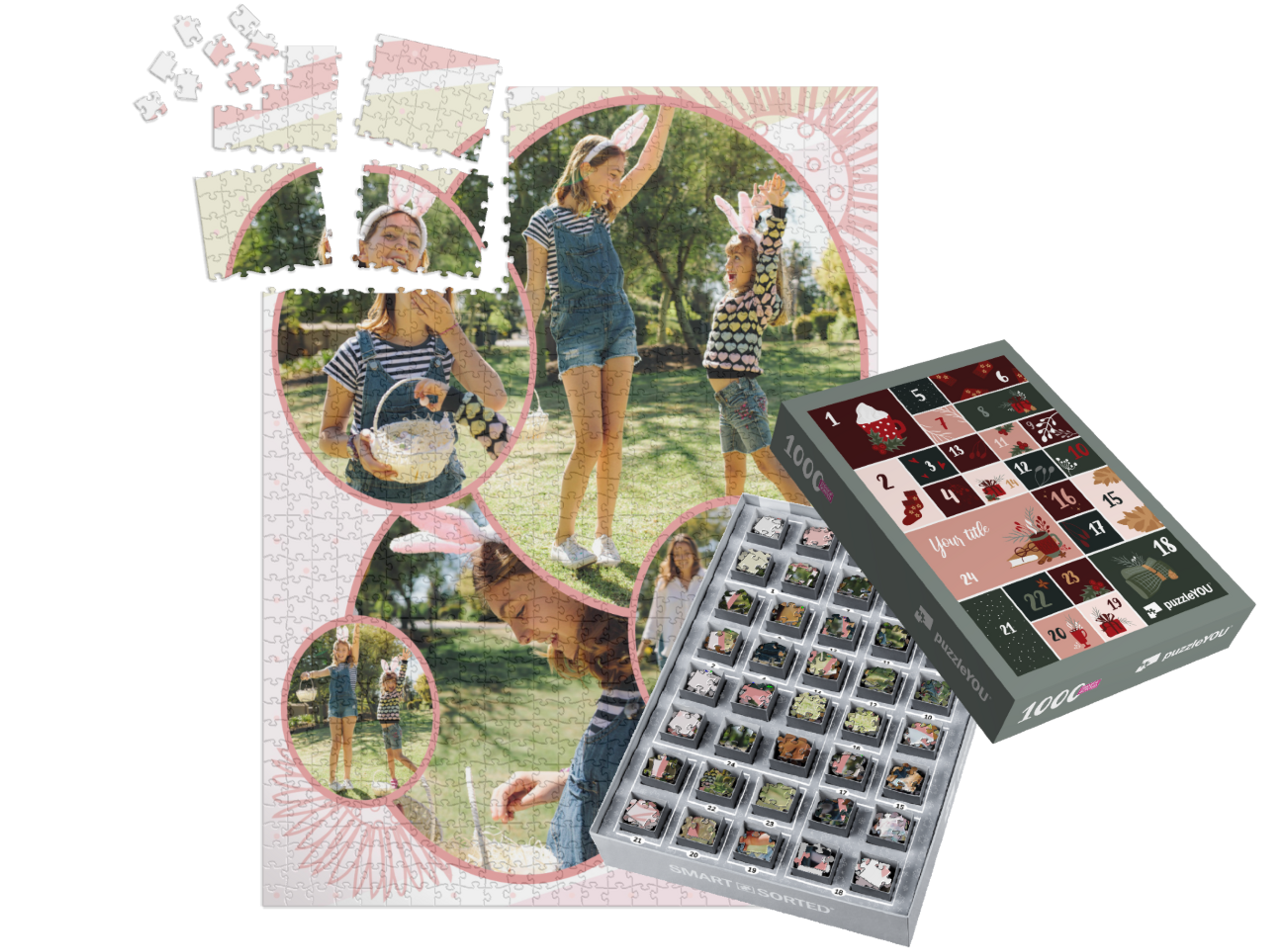 The puzzleYOU Advent calendar is a custom 1000-piece puzzle that arrives pre-sorted! Complemented by an amazing selection of Christmas-themed box designs, it screams Advent calendar even at a quick glance. A variation of SMART SORTED, a new section of the puzzle is put together on each day of Advent. The calendar shows which boxes to assemble each day until the puzzle is finished on Christmas Eve! Make the season more memorable with an Advent calendar custom puzzle!