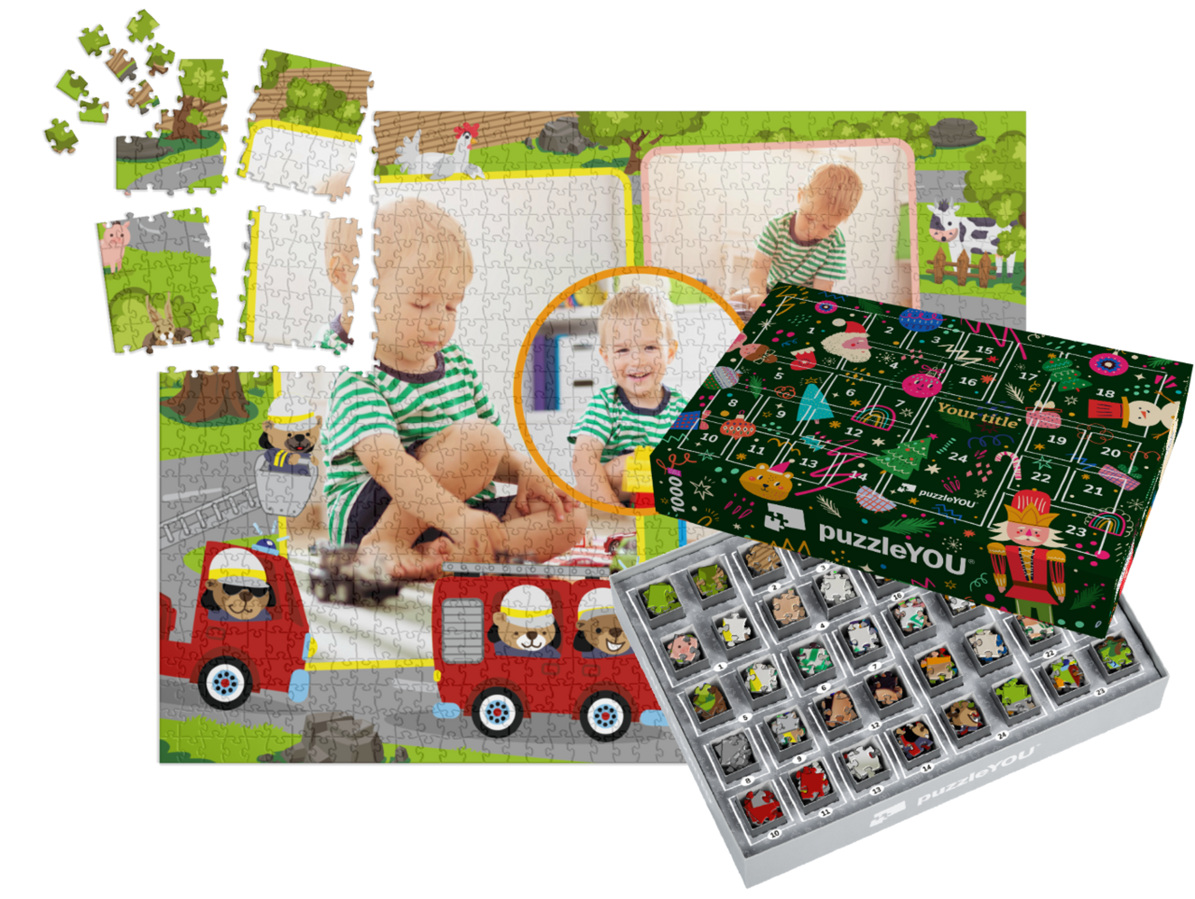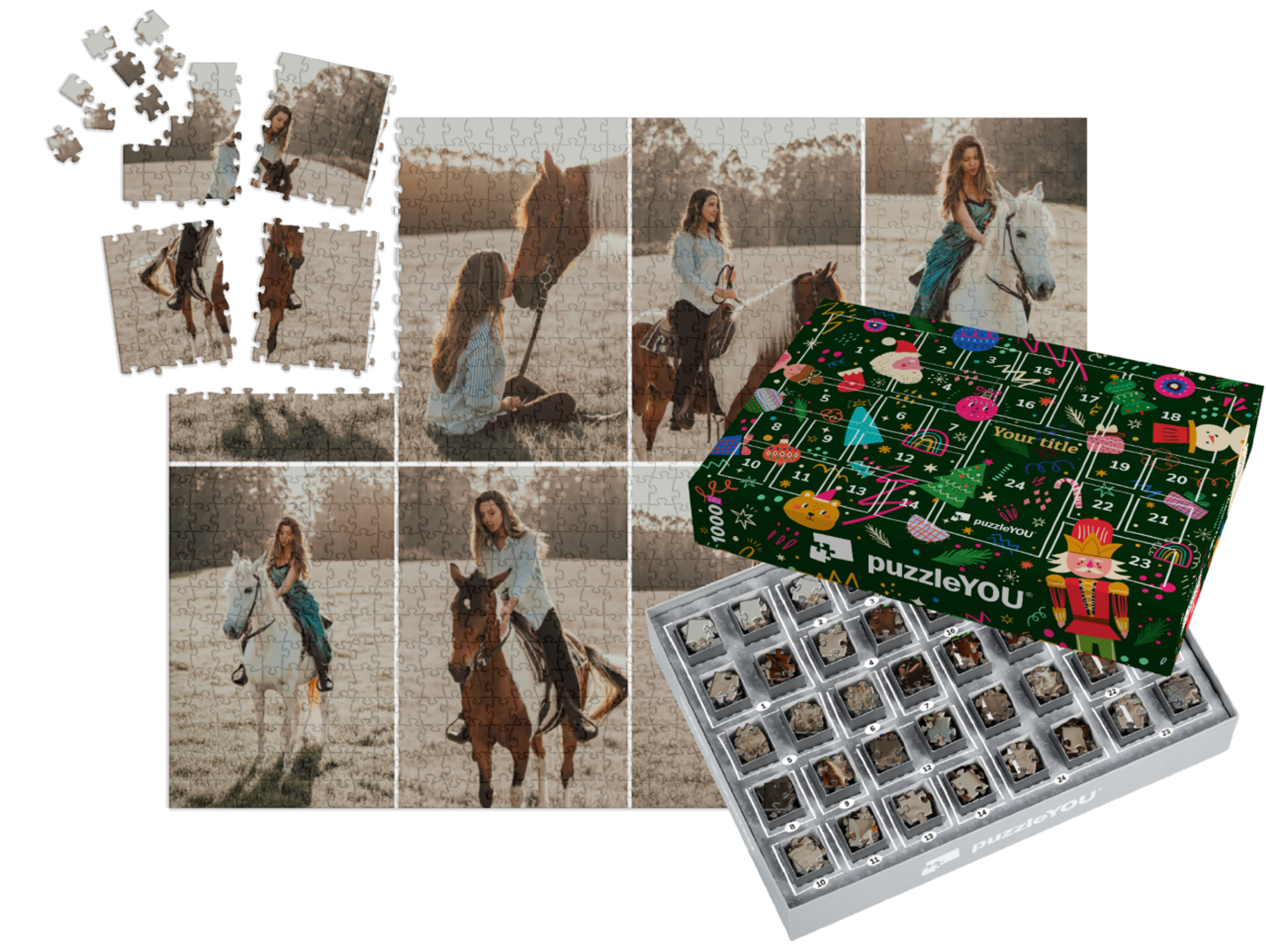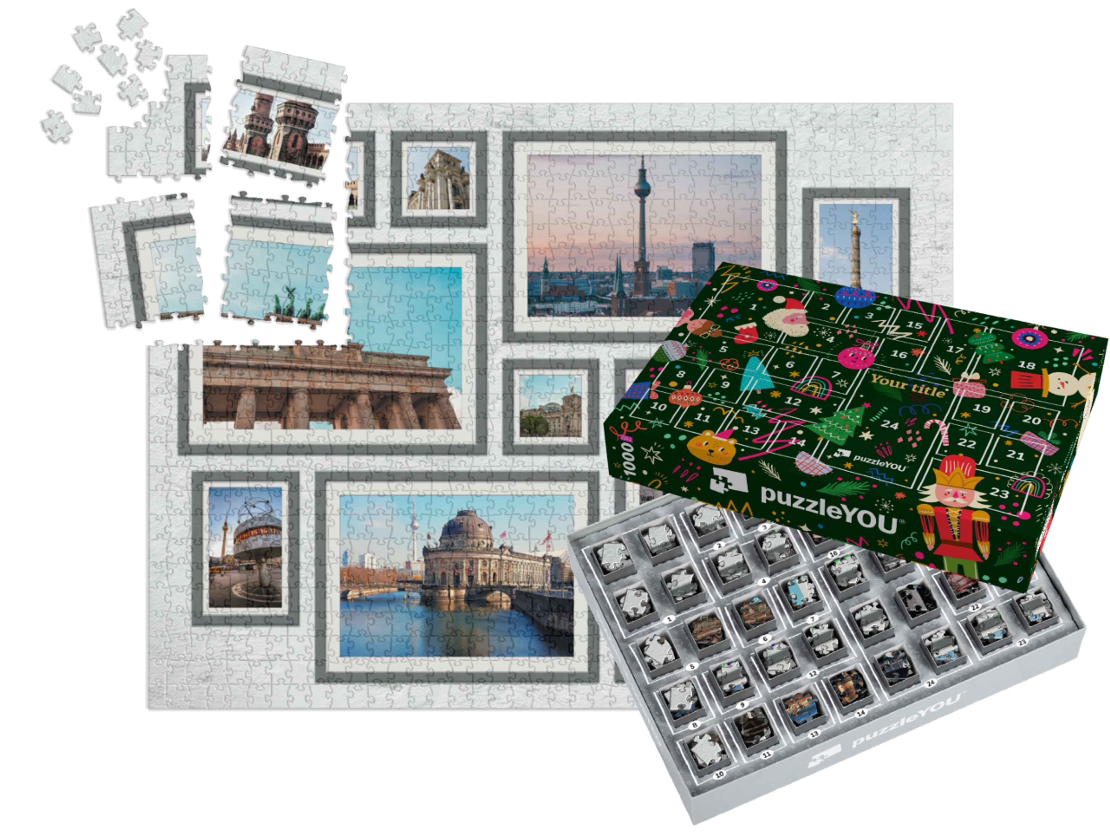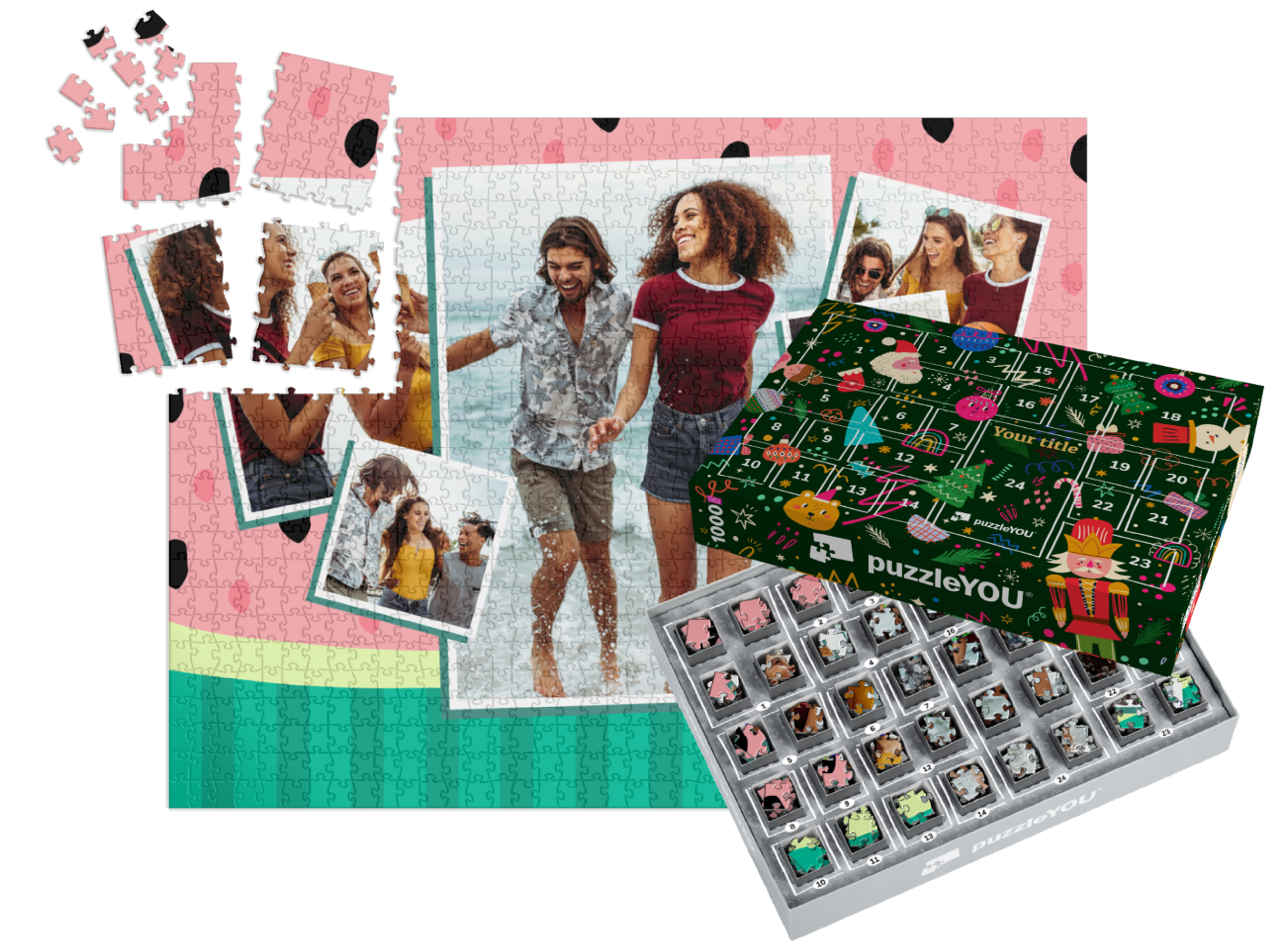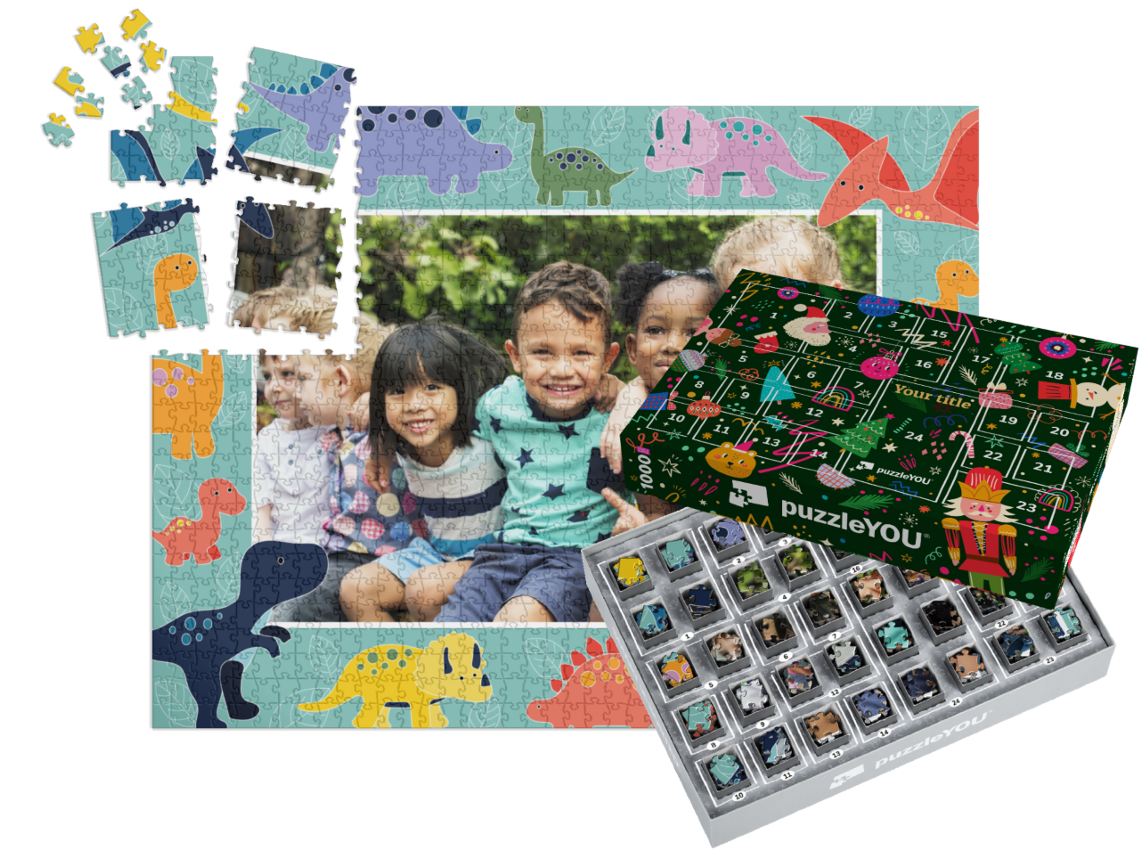 The puzzleYOU Advent calendar is a custom 1000-piece puzzle that arrives pre-sorted! Complemented by an amazing selection of Christmas-themed box designs, it screams Advent calendar even at a quick glance. A variation of SMART SORTED, a new section of the puzzle is put together on each day of Advent. The calendar shows which boxes to assemble each day until the puzzle is finished on Christmas Eve! Make the season more memorable with an Advent calendar custom puzzle!
