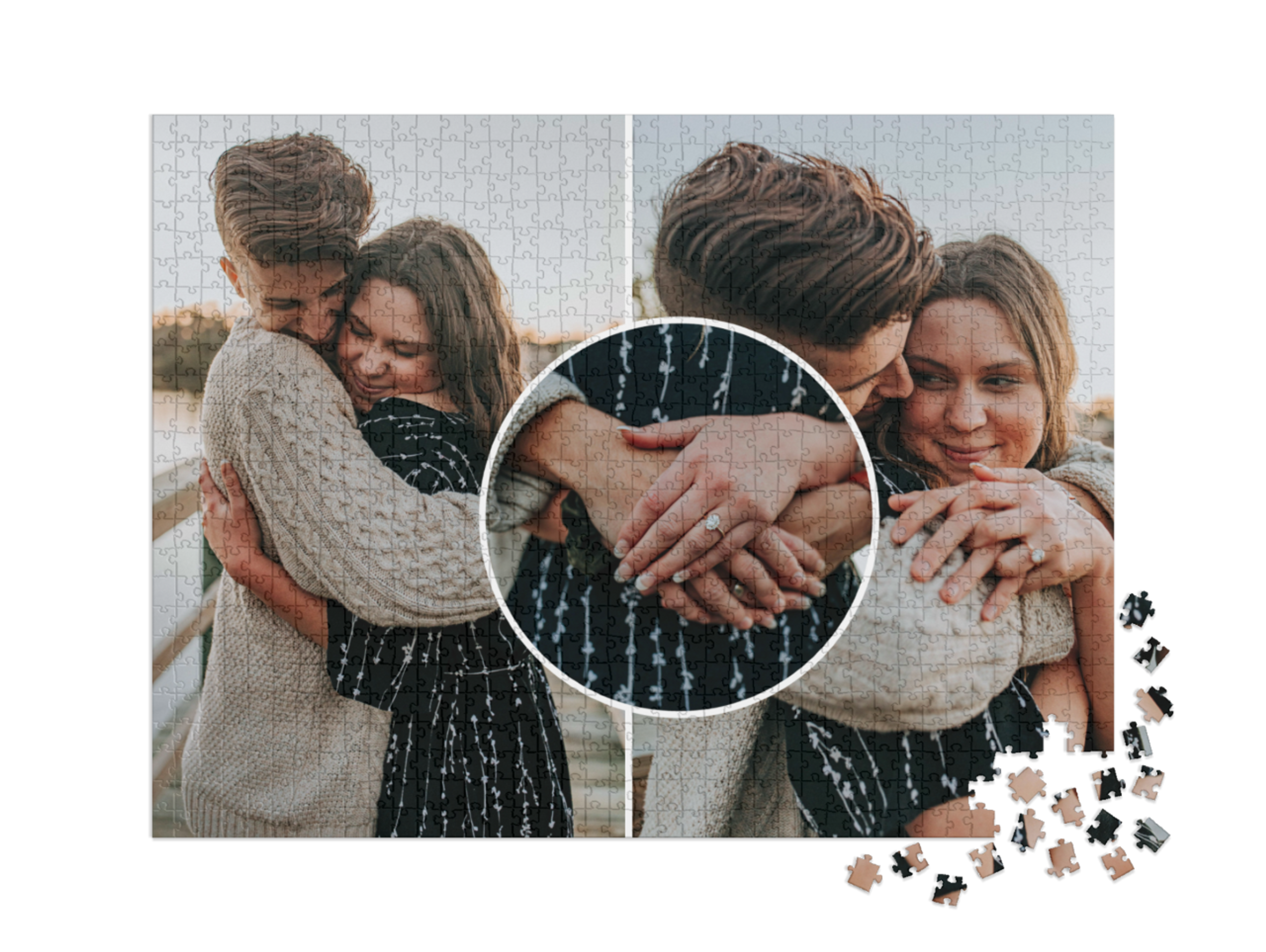 The 1000-piece personalized custom photo jigsaw puzzle has always been a best-selling favorite. Now it comes in a poster size with the XXL 1000-piece puzzle! These puzzles have 1000 pieces and the same finished size as our 2000-piece jigsaw puzzles. The XXL means not only a larger puzzle size but larger puzzle pieces! They're twice the size of our of original 1000-piece puzzles, offering great new puzzling possibilities.